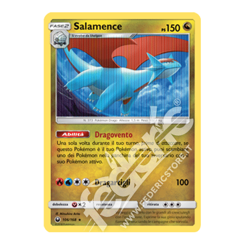 106-168 Salamence Holo (IT) – NEAR MINT Home / Carte Singole (IT) / Tempesta Astrale / 106-168 Salamence Holo (IT) – NEAR MINT€7.20 Oppure paga in 3 o 4 rate a partire da €1.80 senza interessi.Quasi esaurito 106-168 Salamence Holo (IT) - MINT quantità Aggiungi COD: TEMP.ASTR/106-168h Categorie: Carte Singole (IT), Tempesta Astrale Informazioni aggiuntive Informazioni aggiuntive RARITA' Holo SERIE Tempesta Astrale Prodotti correlati 127-168 Copiona Non Comune (IT) – NEAR MINT €0.30 Aggiungi 064-168 Shuppet Comune Reverse (IT) – NEAR MINT €1.60 Aggiungi 120-168 Skitty Comune Reverse (IT) – NEAR MINT €1.60 Aggiungi 117-168 Whismur Comune (IT) – NEAR MINT €0.15 Aggiungi