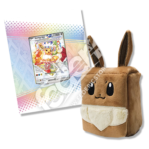Ti aspettano inoltre un morbido portamazzo ispirato a Eevee, un tabellone di gioco e un set completo di bustine protettive con una magnifica illustrazione di Eevee e le sue evoluzioni, nonché la bellezza di 15 buste dell’espansione speciale Scarlatto e Violetto – Evoluzioni Prismatiche.